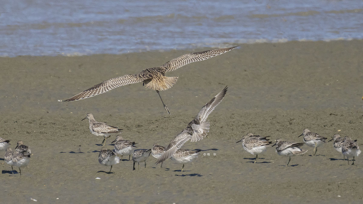 썰물이 시작되자 엄청난 무리의 붉은어깨도요가 날았다