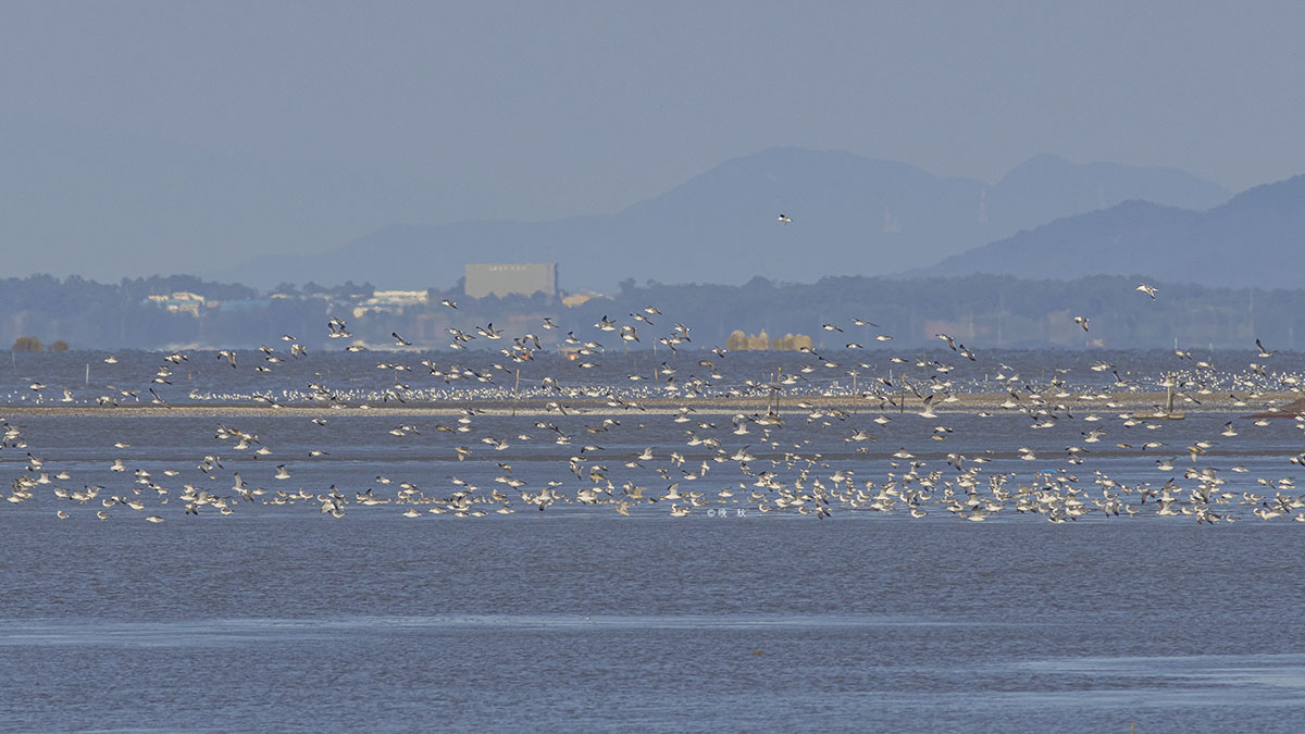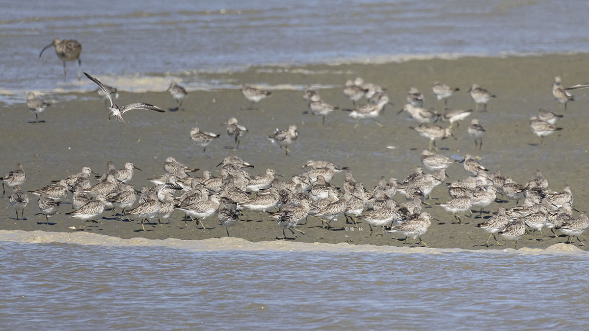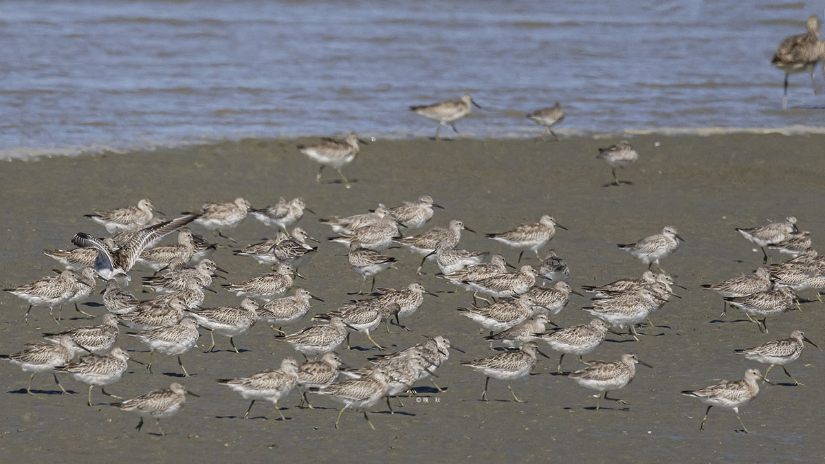 썰물이 시작되자 엄청난 무리의 붉은어깨도요가 날았다