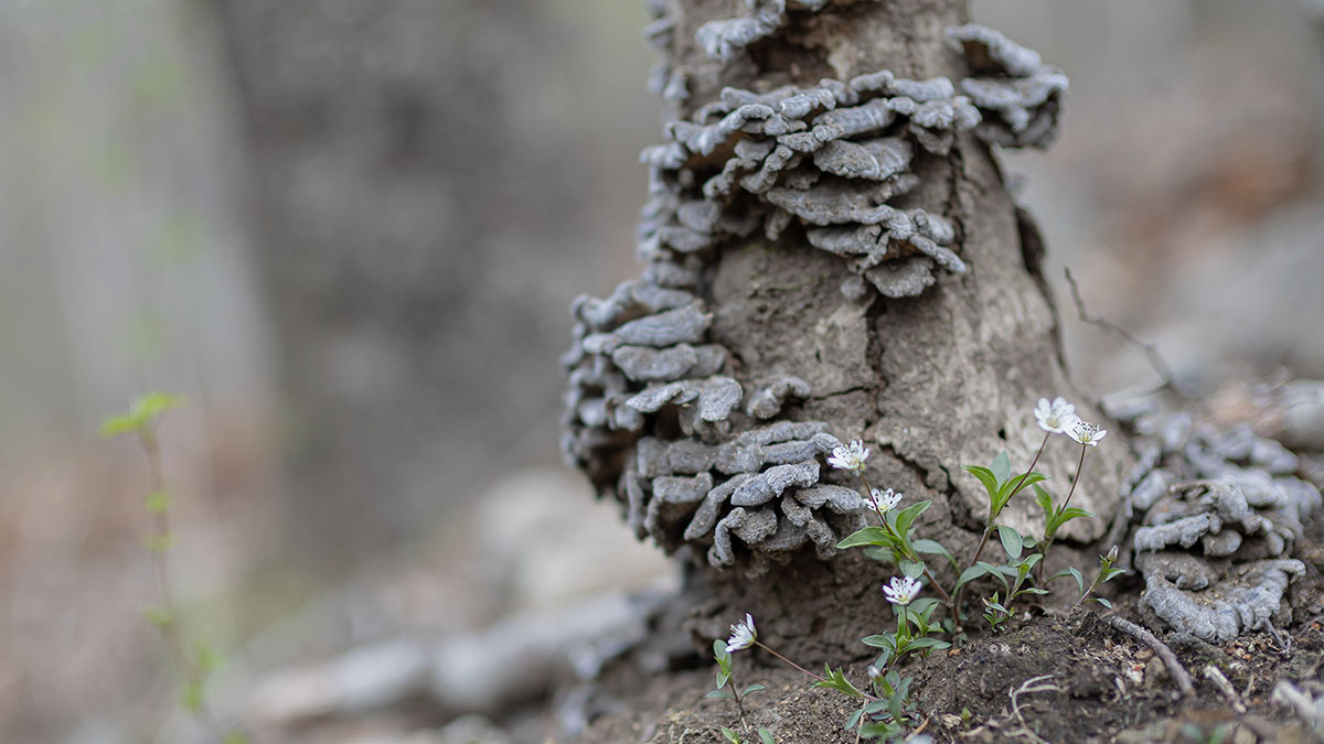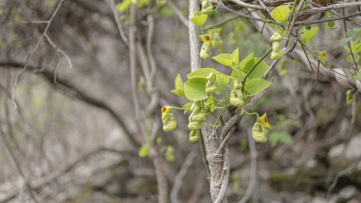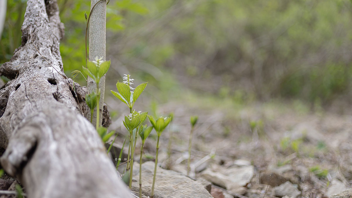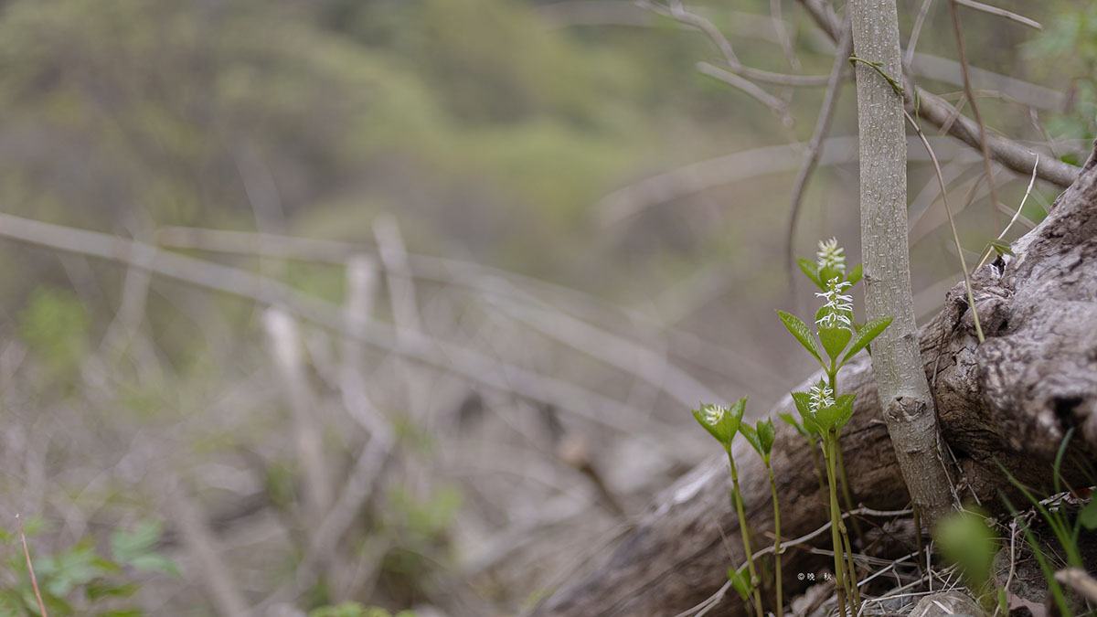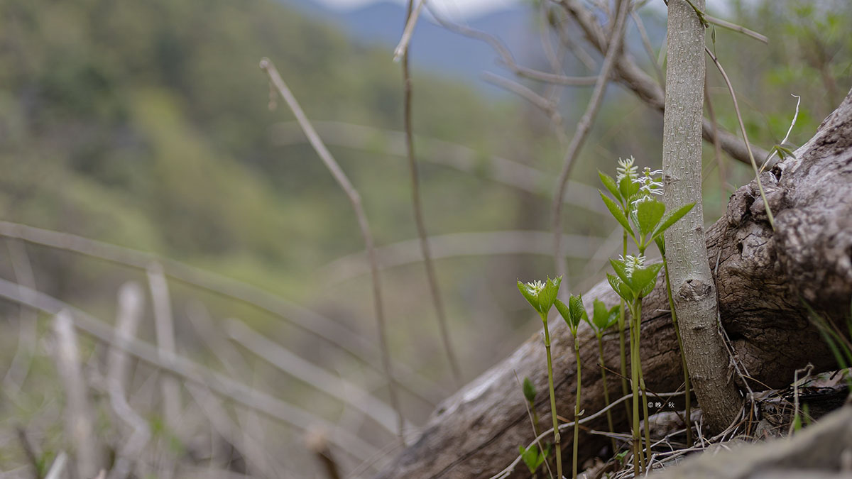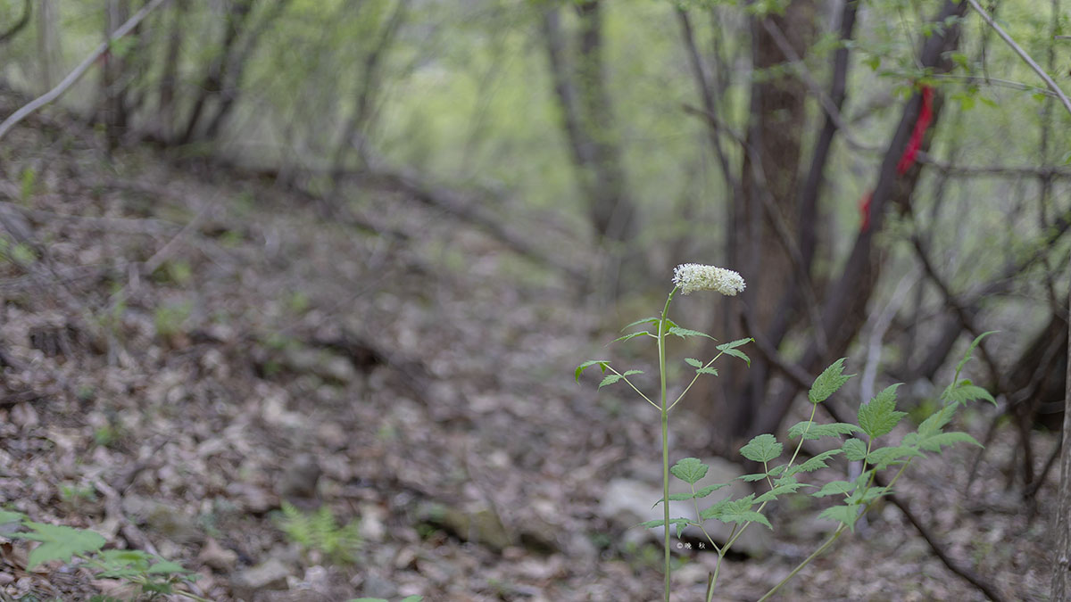 노루꼬리처름 가지끝에 매달려 꽃을피운 노루삼