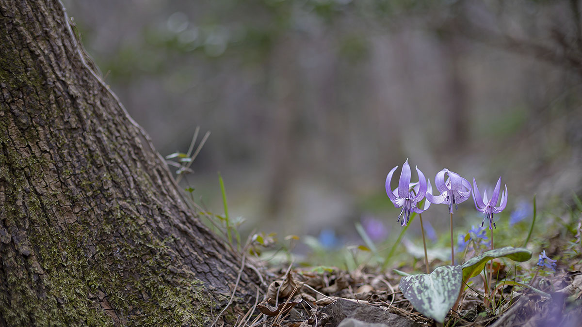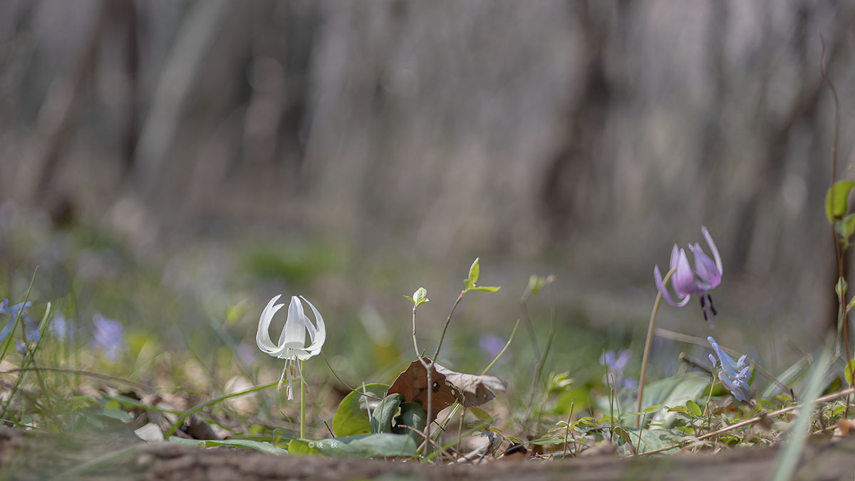 흰옷을 입은 귀한 얼레지도 드문드문 보인다.