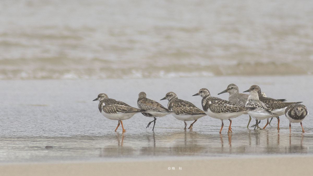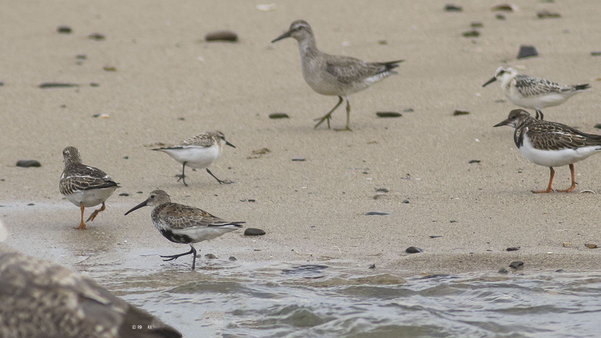 민물도요, 붉은어깨도요, 꼬까도요들이 모여있다