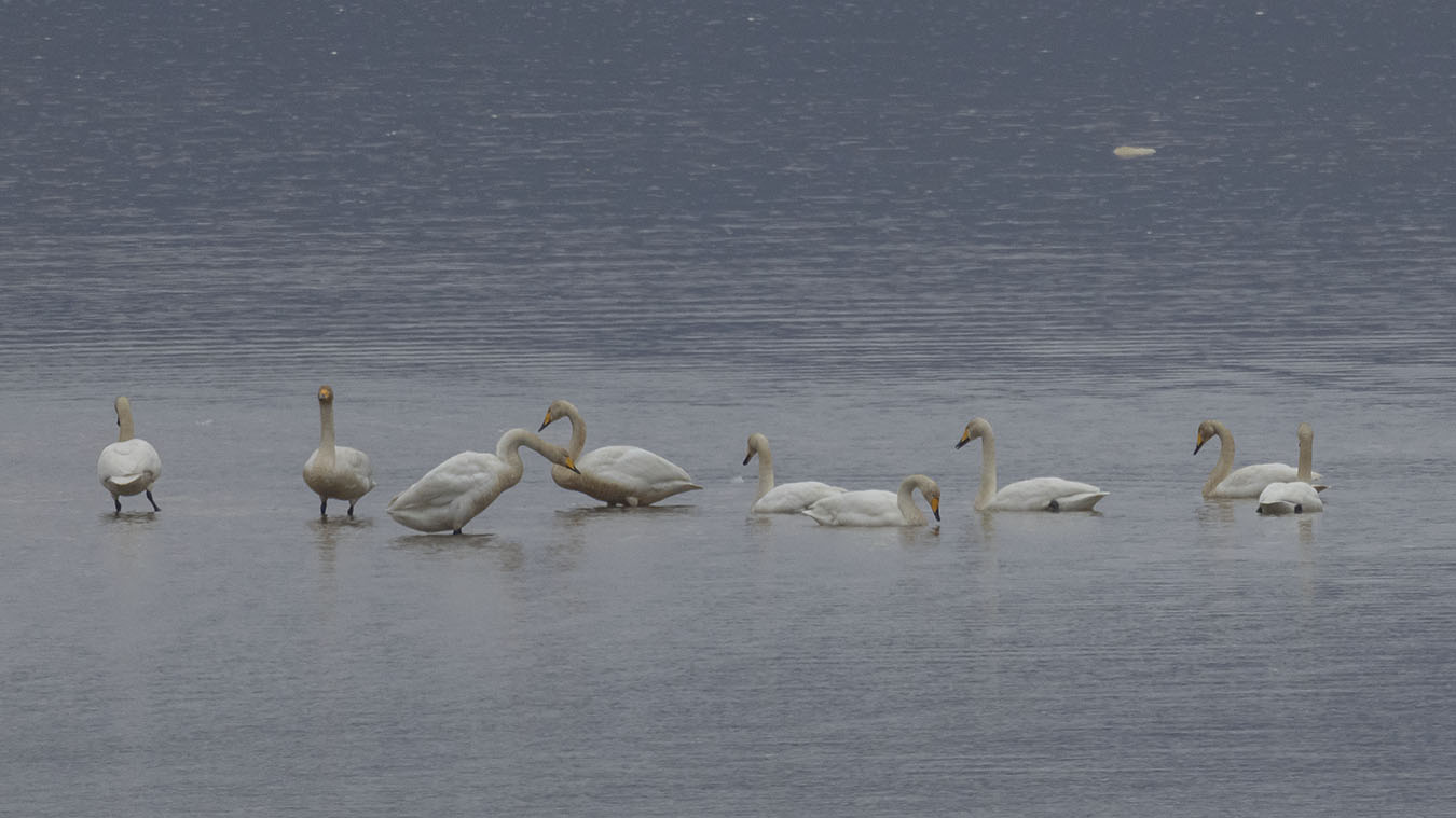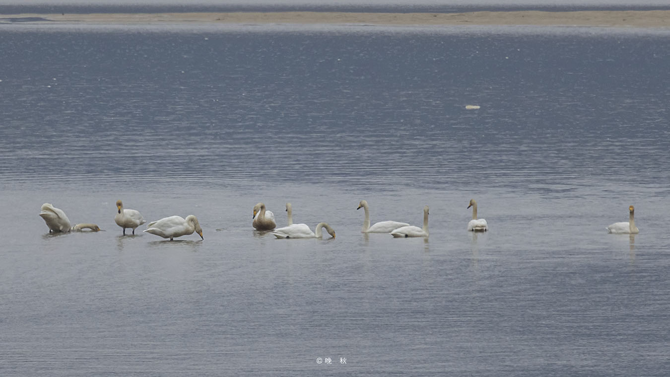 하류쪽 은모래 강변 얕은곳엔 큰고니 무리가 조용히 휴식을 취하고 있다