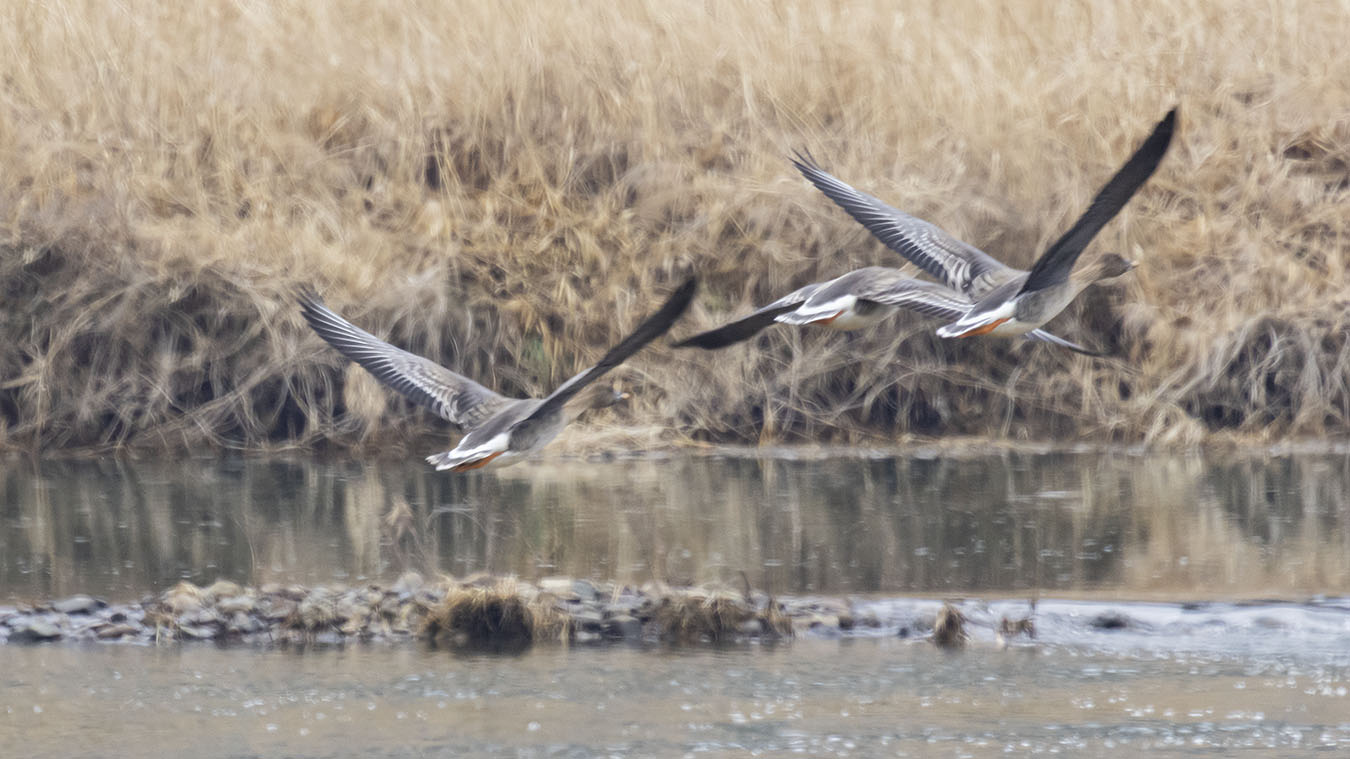 가끔 작은수의 큰기러기들도 삼삼오오 이곳 저곳 먹이터를 옮겨다닌다